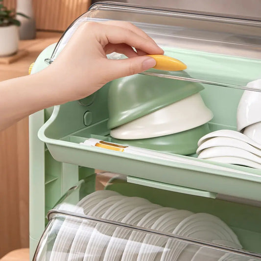 Escurridor de Platos Moderno de Plástico Color Verde con Tapas Transparentes
